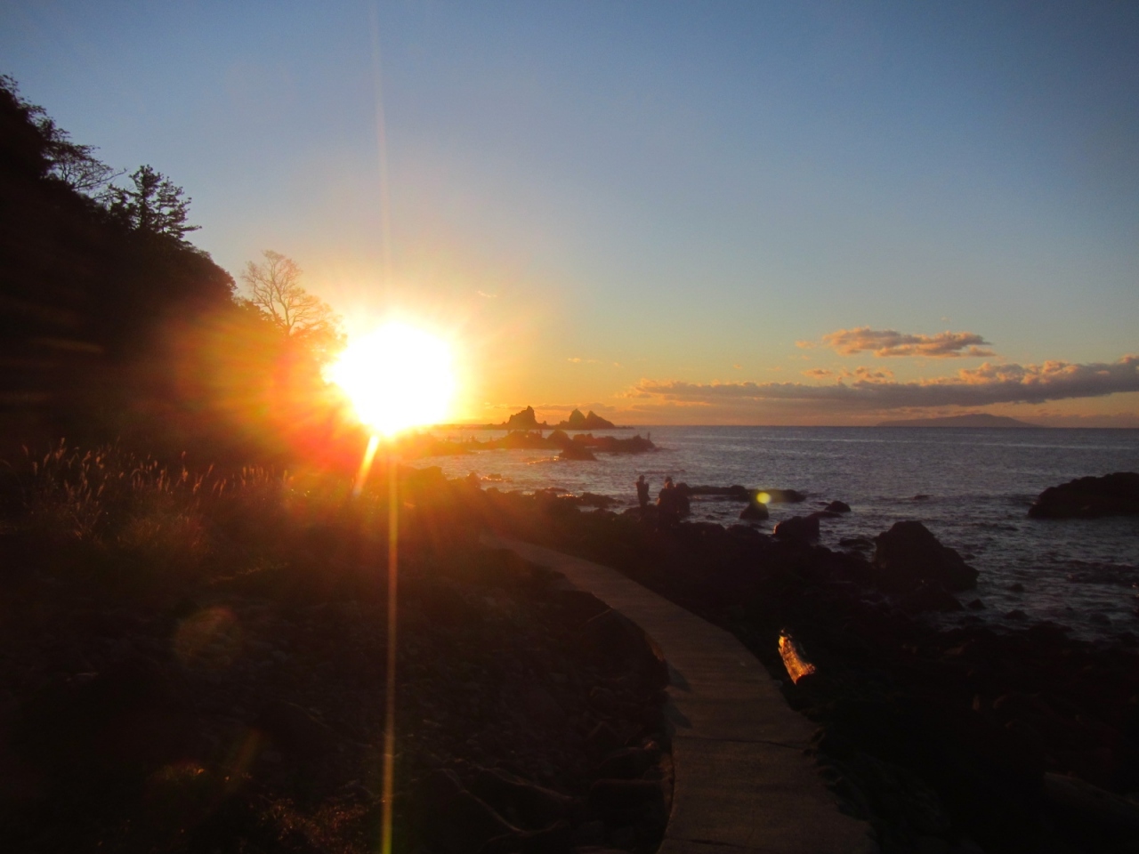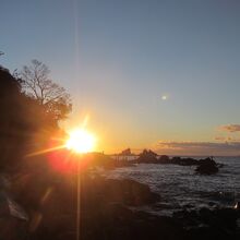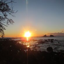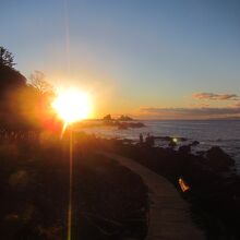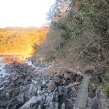 真鶴岬で初日の出を見た際に利用しましたが、岩場やゴロ石の海岸を歩くより便利で、番場浦海岸では三ツ石の岩と岩の間から初日の出が昇る光景が眺められますが、ちょうど太陽が岩と岩の間に入る番場浦海岸の先のポイントまで続いていたら良いのにと思いました。