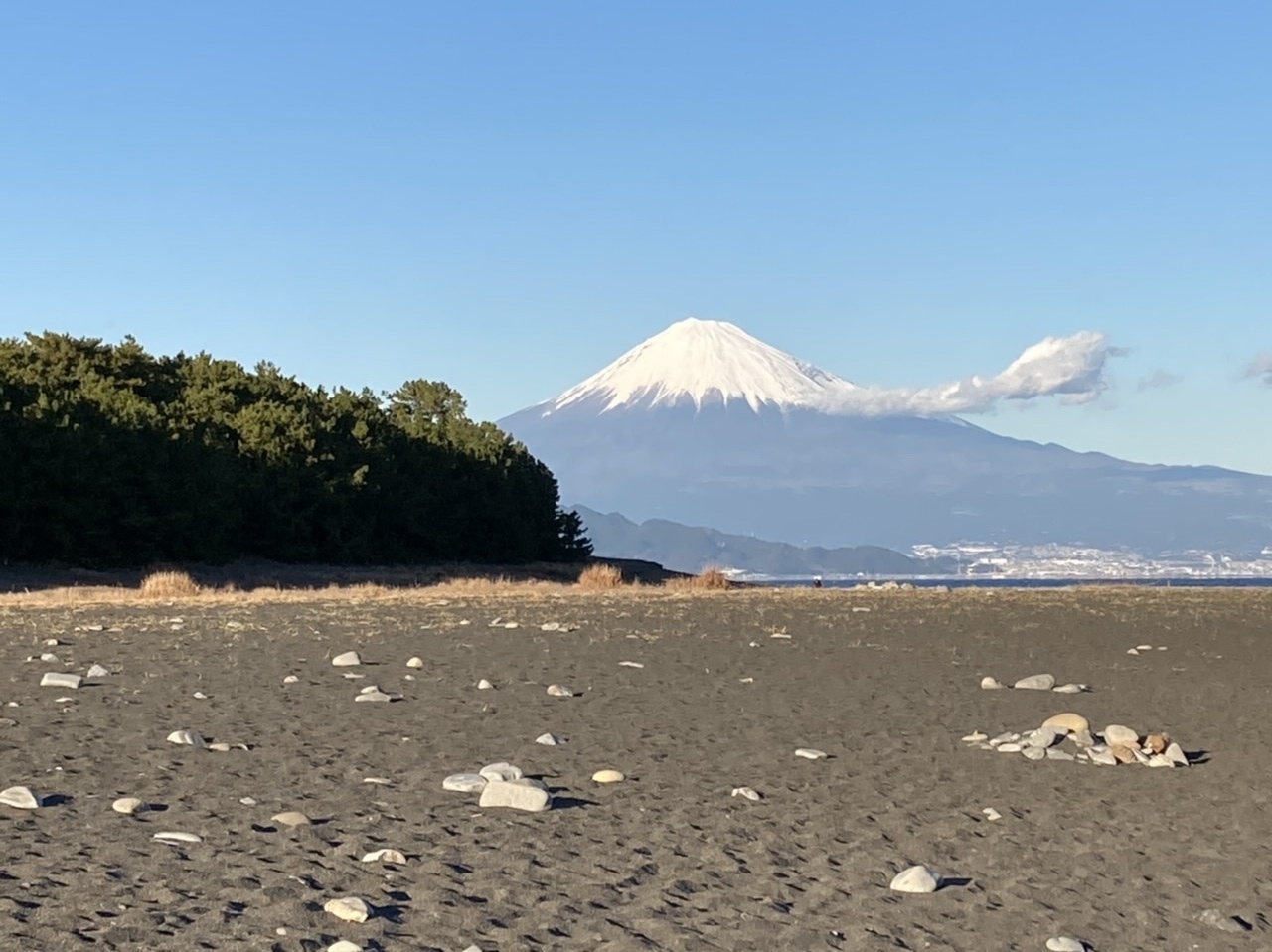 松林の緑・打ち寄せる白波・海の青さと富士山!まさに絶景!
