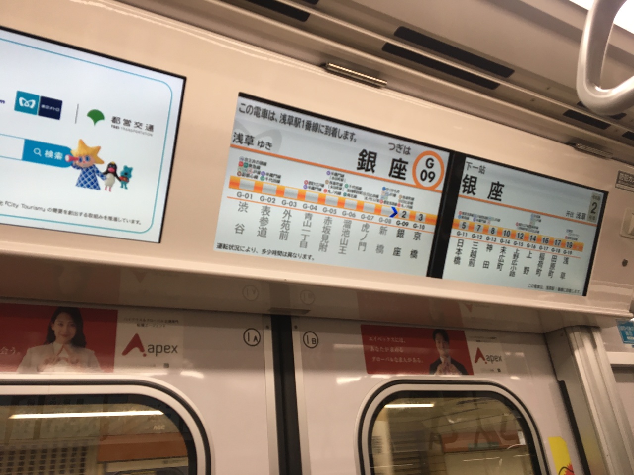 渋谷駅と浅草駅を繋いでいます。新橋駅で乗車して、日本橋駅に向かう際に利用しました。新橋駅ではJRからの乗り換え場所が少し離れていましたが、表示が大きいので迷うことなく乗り換えできました。次の電車もすぐにやって来るので、ホームでの待ち時間もストレスなく快適に利用できました。