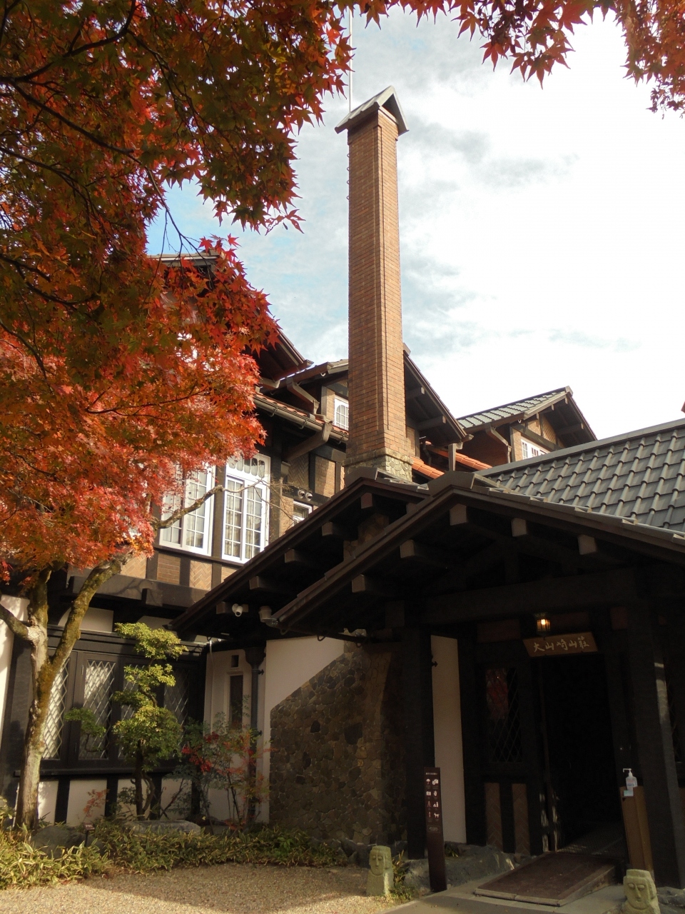 紅葉に包まれた山荘美術館