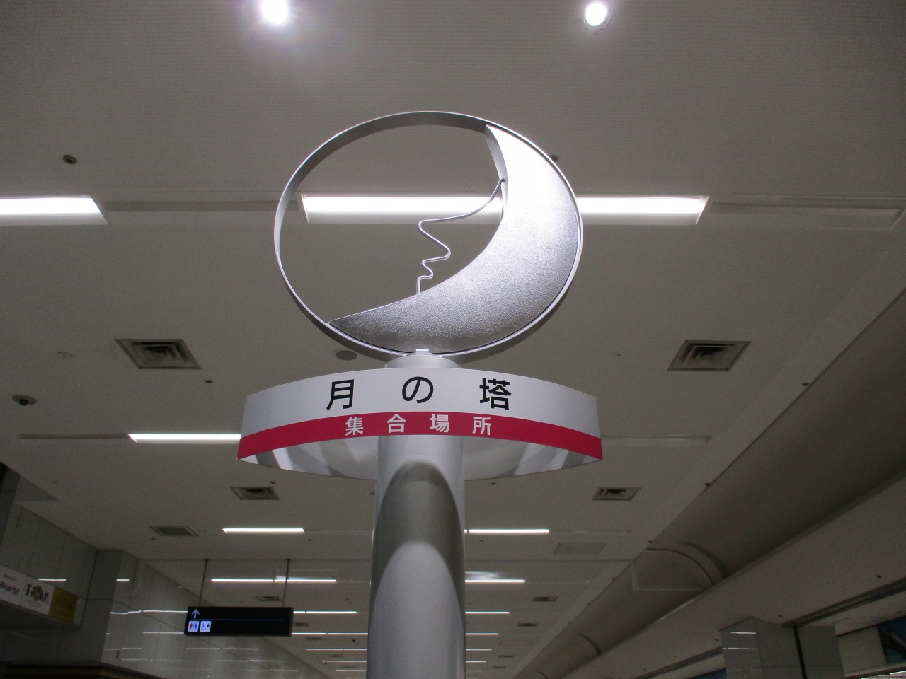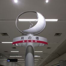羽田空港のB1Fフロアを歩いていた時に、フロアの中央に月のモニュメントが立てられていました。高さは2.5mぐらいのシンプルな形をしていて、月の塔と記されていました。空港で待ち合わせをする時に、それほど混雑していないフロアなので、目印として良いと思います。