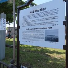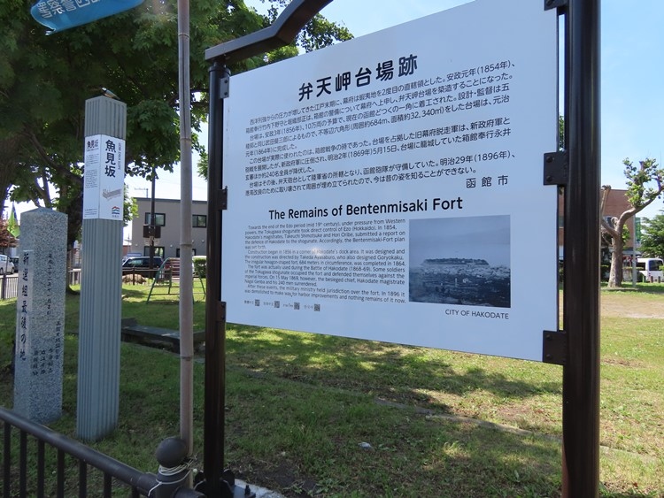 五稜郭と並んで戊辰戦争の最終盤、箱館戦争の激戦の場です。ただし、台場はすぐに解体されて石垣の一部が入舟漁港(函館漁港)の岸壁に見られる程度で、いまではまったく雰囲気をうかがい知ることができません。明治以降も埋め立てが進み、当時の地形とまったく変わってしまっているようです。市電「函館どつく前」終点すぐにある小さな公園に粗末な碑と説明板がそのすべてを代用しているのはとても残念です。