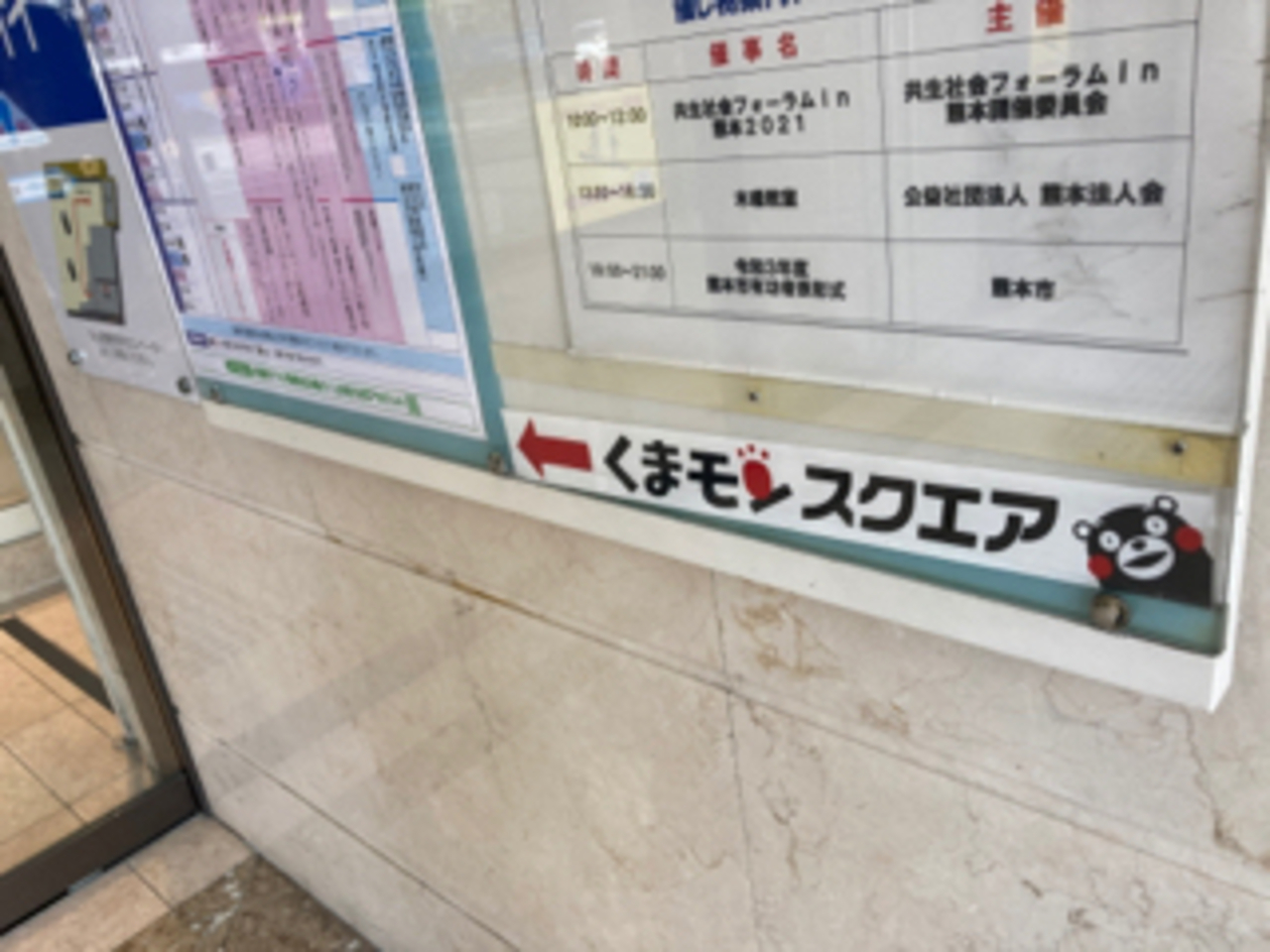 くまモンの在室時間の時刻表もあって、合わせて訪問すれば、くまモンに会うことができて、面白いです。