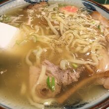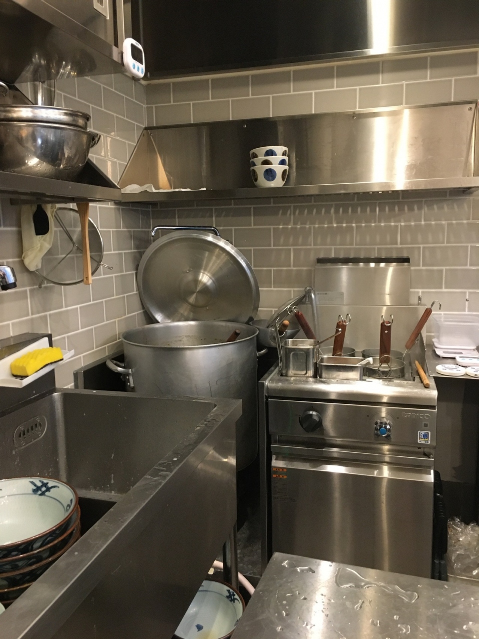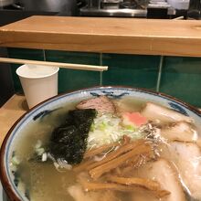 カウンター6席のみの狭い店なので多少の行列がありました。小さな自動食券機が一つあり、中華そば890円の券を購入。待っている間に店内では、煮干し味が効いたスープの匂いが漂っていました。麺は少し太めの平べったい麺でネギが散らばりチャーシューが柔らかく旨かったです。