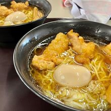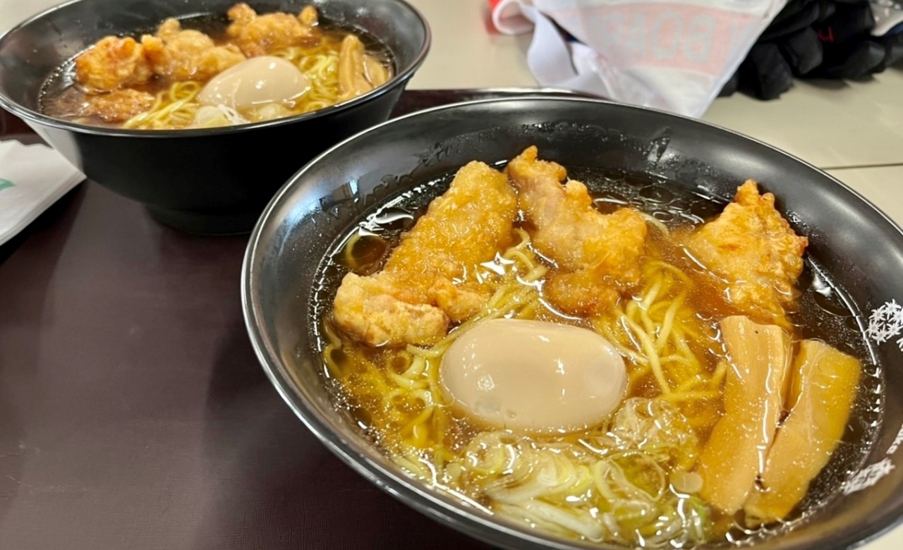 スキー、スノボはさておき、ピラタスの「からラー」(から揚げラーメン)が目的で来てしまった人、いたり、いなかったり。ボリュームはもちろんあるのですが、さらに煮卵もあるのでご用心。冷えた体にあたたかいいっぱいを!