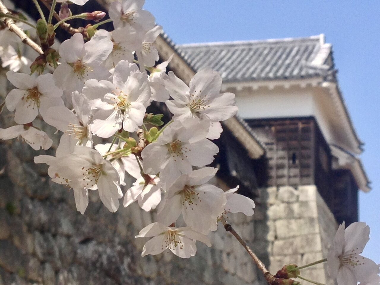 松山に到着して、まずは、松山城に電車で向かいました。大街道で降りて、そこから歩いてリフト乗り場まで行き、城までリフトで上がりました。ちょうど桜が満開で、広場では、花見客で賑わっていました。山頂にある城から見る市内の景色は絶景でした。天守閣は、国の重要文化財に指定されています。