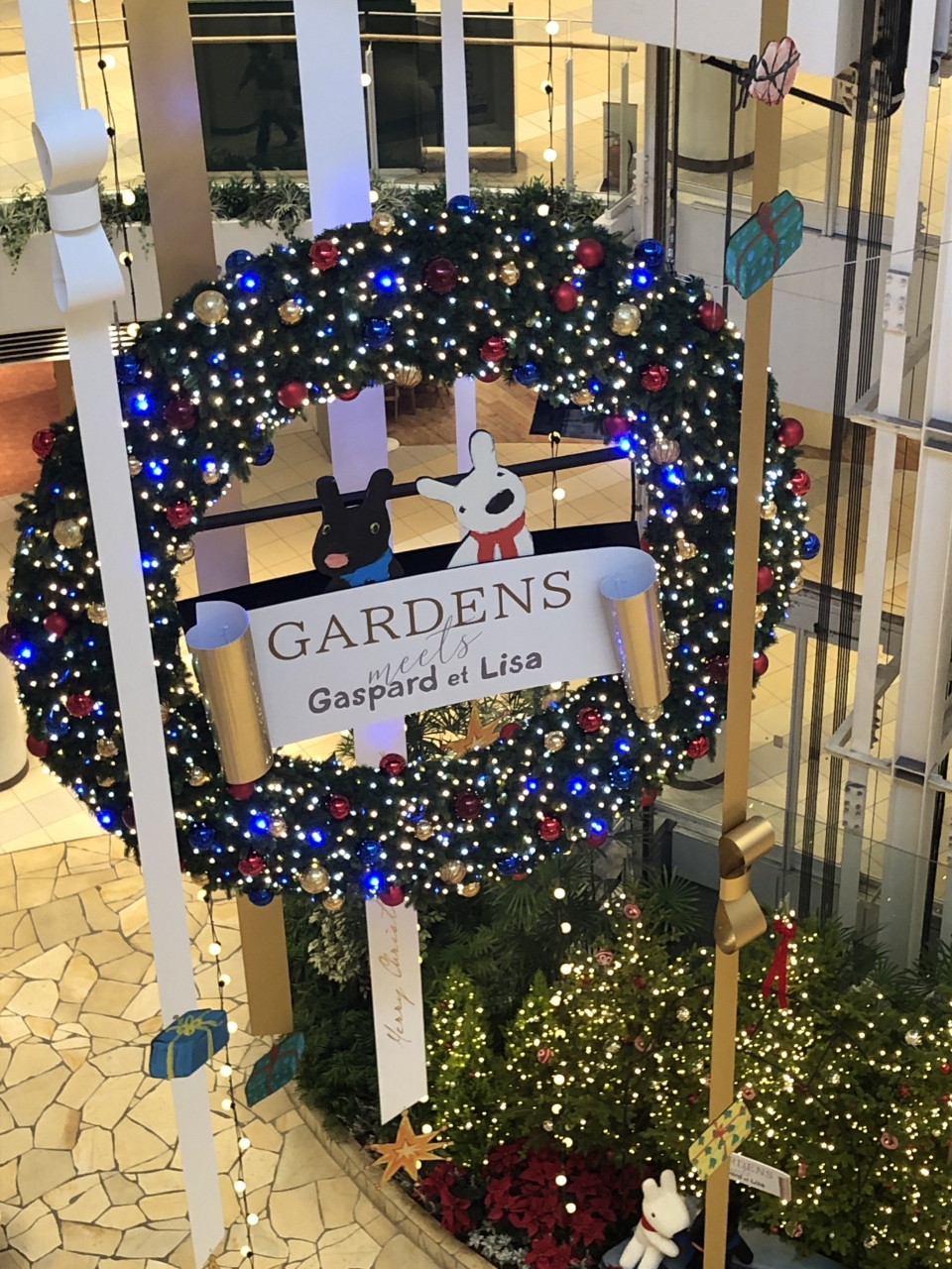 いつもクリスマスの時期になると大きなクリスマスツリーが入口に飾られているのですが、今年はリサとガスパールのかわいいクリスマスデコレーションでした。