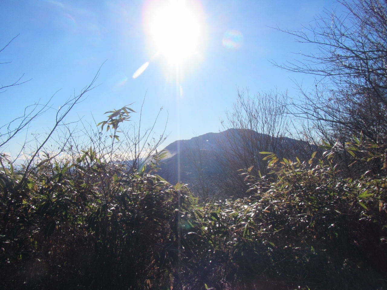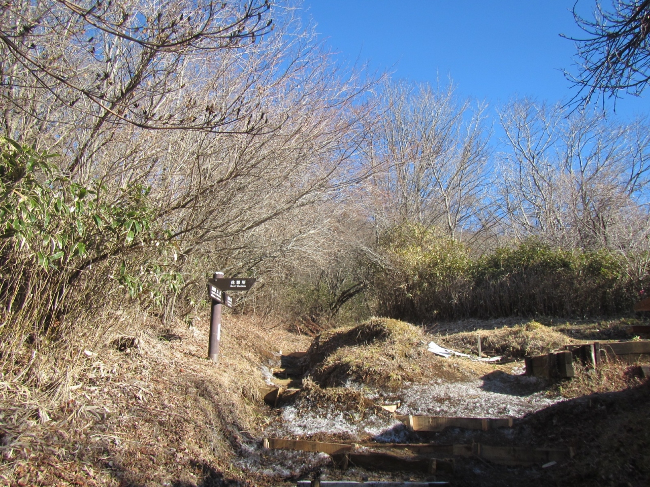 金時山への縦走路に入ると、尾根道なのでやや視界が開け、傾斜もそれまでより緩やかな感じがしましたが、金時山に近づくにつれ、今まで無かった4、5mほどの急な高低差のアップダウンが出てきて、ロープも張られていました。ただ、登山靴を用いるまでもなくスニーカーで行けた上、若者ならロープも使わずそのまま登っていけます。