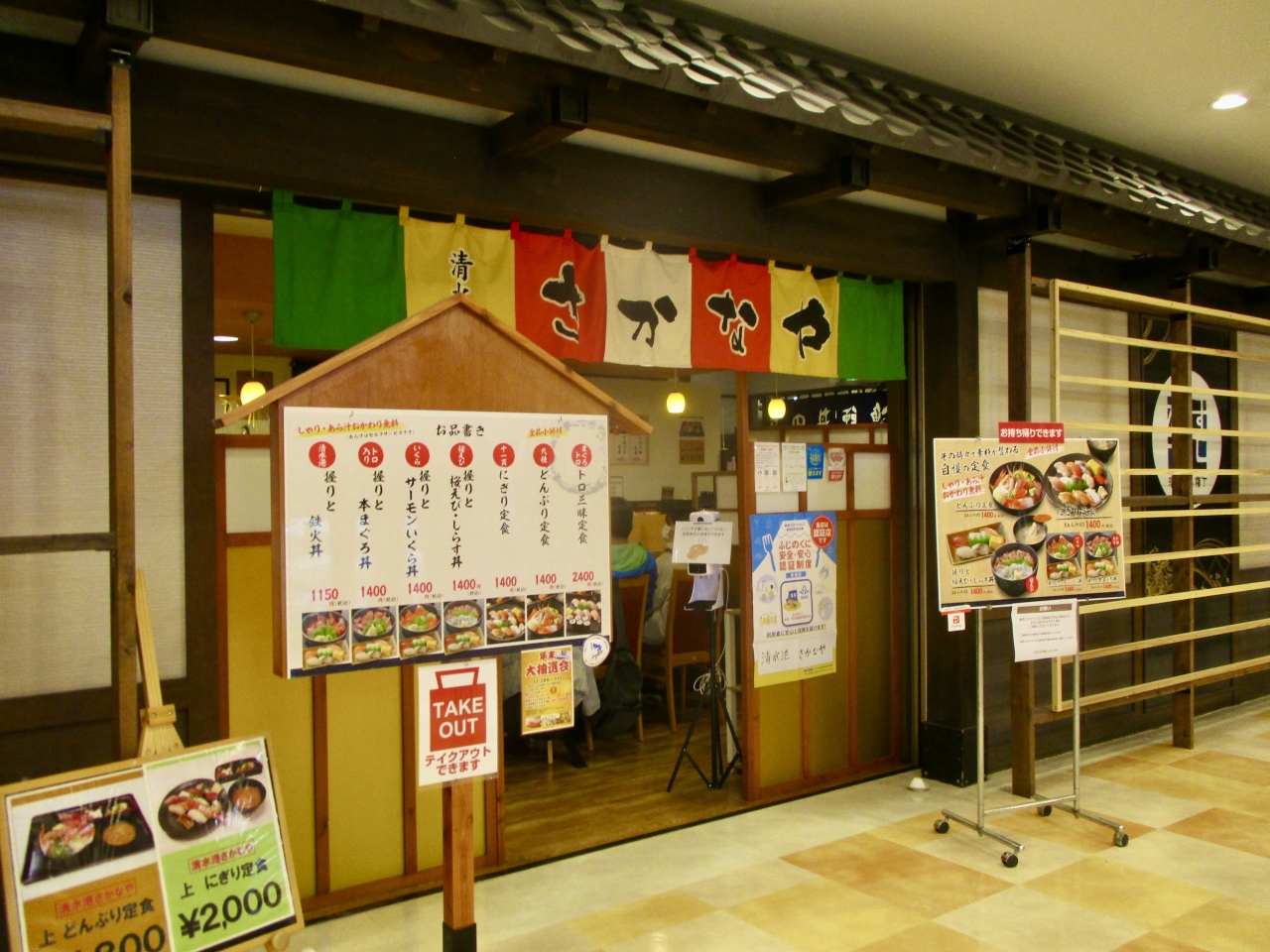 清水エスパルスドリームプラザ1階のすし横丁の入り口にありました。こちらの売りは、しゃり・あら汁がおかわり無料と言うことでした。あら汁はセルフサービスでした。色々なメニューがありますが、握りと丼のセットのメニューがいくつもあるのが特徴的でした。