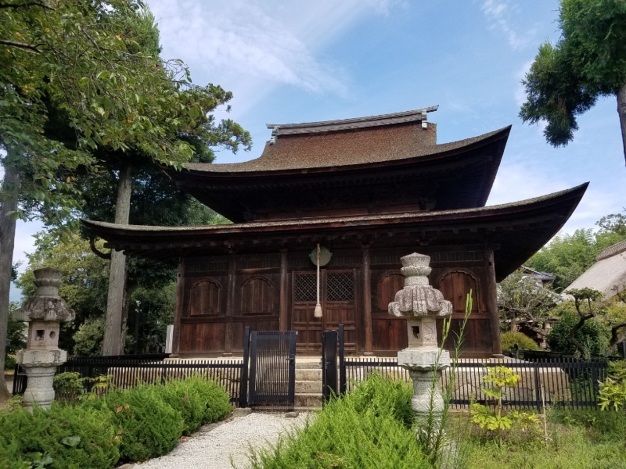 東山梨駅から歩いて行きました。その道すがら葡萄畑があったので清白寺の参道の両側に続く緑もぱっと見で葡萄かなとも思ったのですが梅の木だそうで機会があれば開花時期にも来てみたいですね。総門に続いて鐘楼門をくぐると二層の屋根の反りも美しい仏殿が現れます。境内の中でも過去の火事による焼失を免れた建物で建立は1415年と大変に歴史があって国宝なのも納得です。さらに奥には大きな三角のシルエットが美しい庫裏がでんと構えていてこちらも重要文化財とのことで見所は満載でした。
