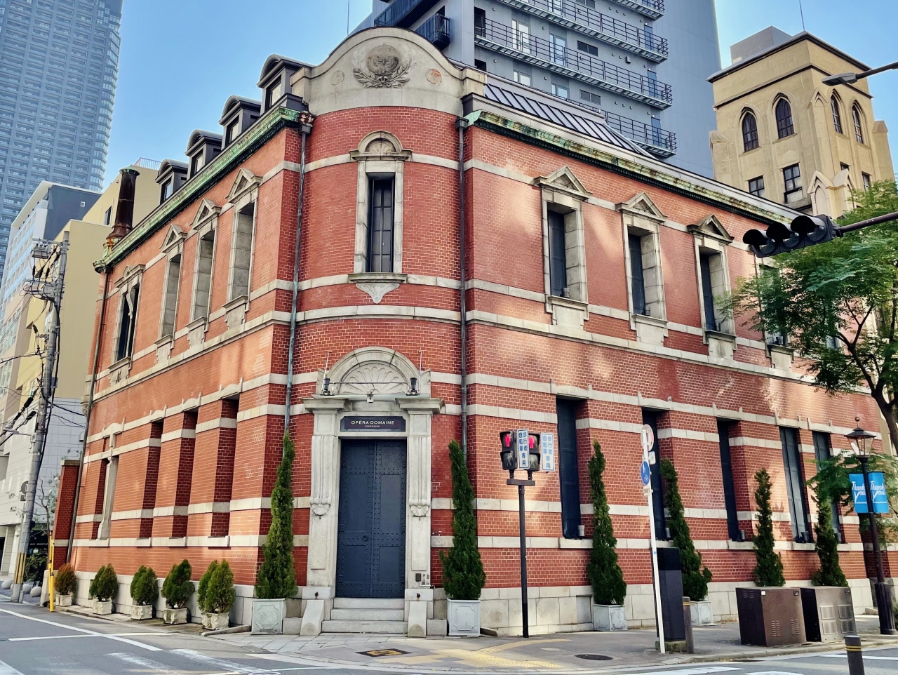 御堂筋と堺筋の真ん中を通る三休橋筋にあります。1912年に建てられた旧大阪教育生命保険ビルで、赤煉瓦が印象的な風格ある外観を残しています。現在は、ウエディング会場「オペラドメーヌ高麗橋」として利用されています。日本基督教団浪花教会が隣接してあり、周辺には歴史的建築が多く残っています。