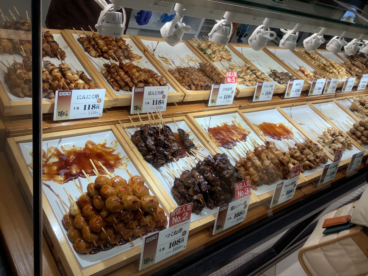 ガラスショーケースには 美味しそうな「焼き鳥」がズラリ〜と並んでいて、