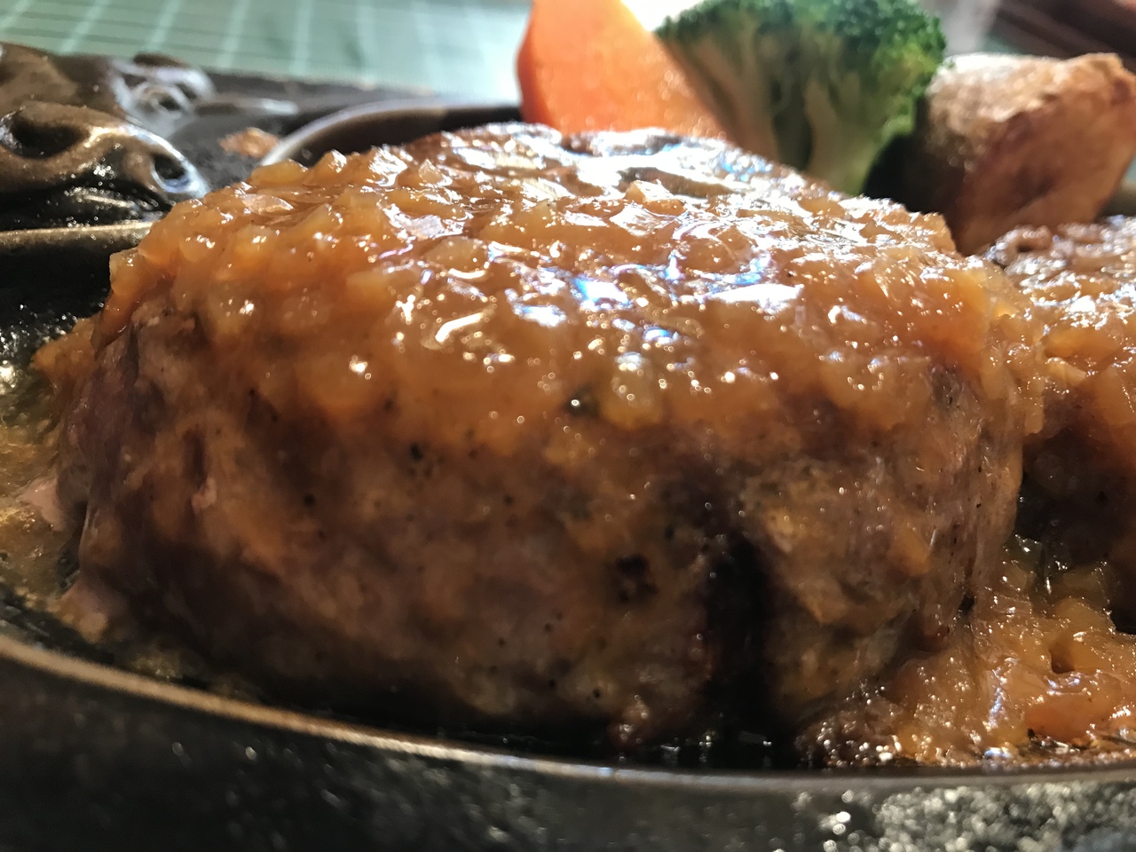 牛肉100パーセントのハンバーグは、案外あっさりしていてとても肉肉しさがあり、非常に美味しかったです。
