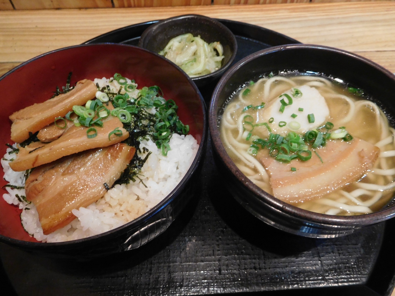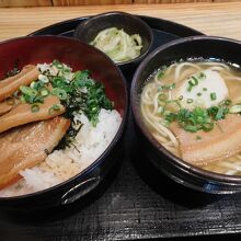 那覇空港の4階、レストランフロアにある沖縄料理(そば)のお店です。メニューを見ると、いろいろなセットメニューがあったので、このお店に入ってみる事にしました。事前に食券を購入し、お店の前で待っていると案内がありました。カウンター席とテーブル席があり、一人でも気軽に利用しやすい感じのお店でした。「キジムナー定食」を注文しましたが、割とお手頃価格で2種類の沖縄の味が楽しめて良かったです。
