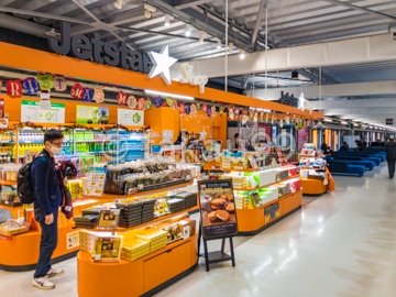 「ジェットスターショップ」は搭乗口のちょっと手前にあります。チェックインカウンターやフードコートのあるビルからかなり歩きます。種類はほどほどですが、ペットボトルのドリンクや食べ物、おみやげ物などが買えます。