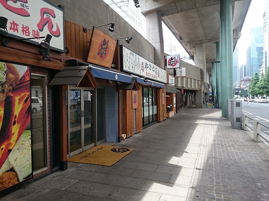 JR東京駅丸の内北口から徒歩5分程度、常盤橋架道橋と呉服橋架道橋の間のJR線路の高架部分が銭瓶町橋高架橋です。東京駅から続く高架下の飲食店街となっています。ところどころの壁に赤レンガ壁を見つける事が出来ます。