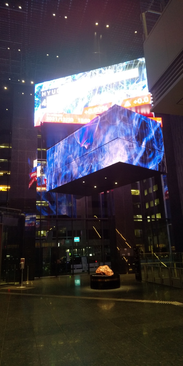 大型ディスプレイでは株価がうつされていてまさに金融の街の新ランドマークです
