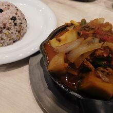 JR新橋駅のSL広場に面した、ニュー新橋ビル1階にあるお店です。「1日分の野菜カレー」がリニューアルしていたようで、カレーは4種類から選べ、ご飯も白米か十五穀米から選べるようになっていました。トマトカレーにしたら、マイルドな味わいになっていてとても美味しかったです。スコップみたいなスプーンと、キャンプ用品のようなコップに入ったお水も個性的で面白いです。会計の際、割引券を頂けたので、また別のメニューを食べに再訪したいと思えるようなお店でした。