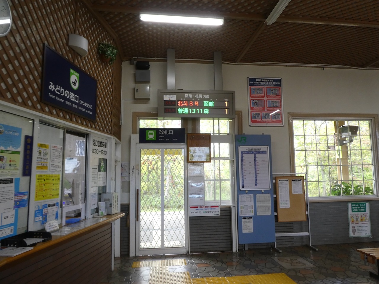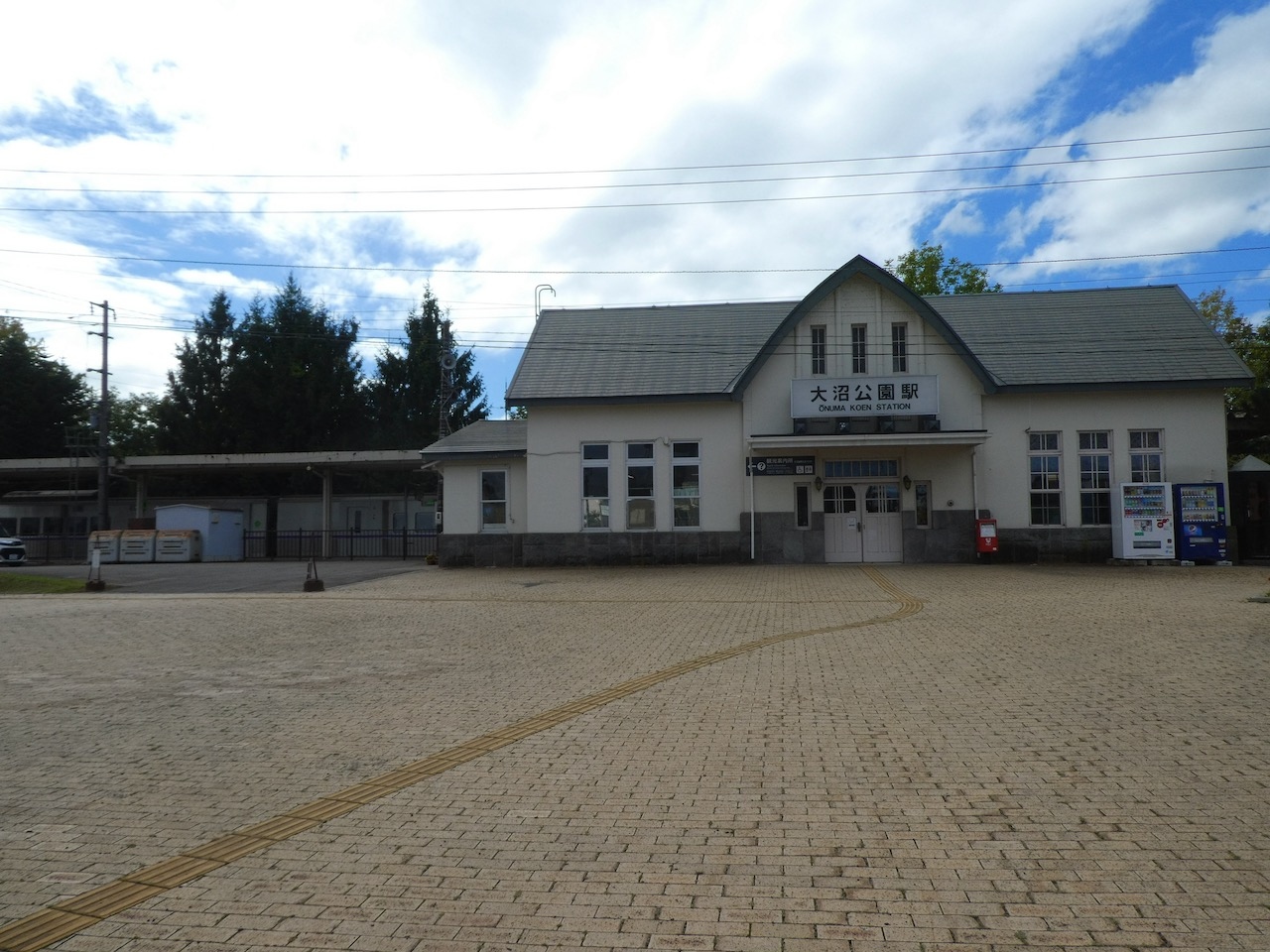 特急で函館から3駅。昔は1駅目でした。この駅は駅舎がかわいい感じ。朝から夕方は友人駅ですが、830前と1810以降は無人駅なのに注意。ホームは1面のみなので上下とも同じホーム。乗り間違えに注意。乗降は跨線橋もなくラクです。駅前には大沼は見えません。駅を降りたら左手が観光案内所です。大沼へは正面の道のやや左手前方になります。