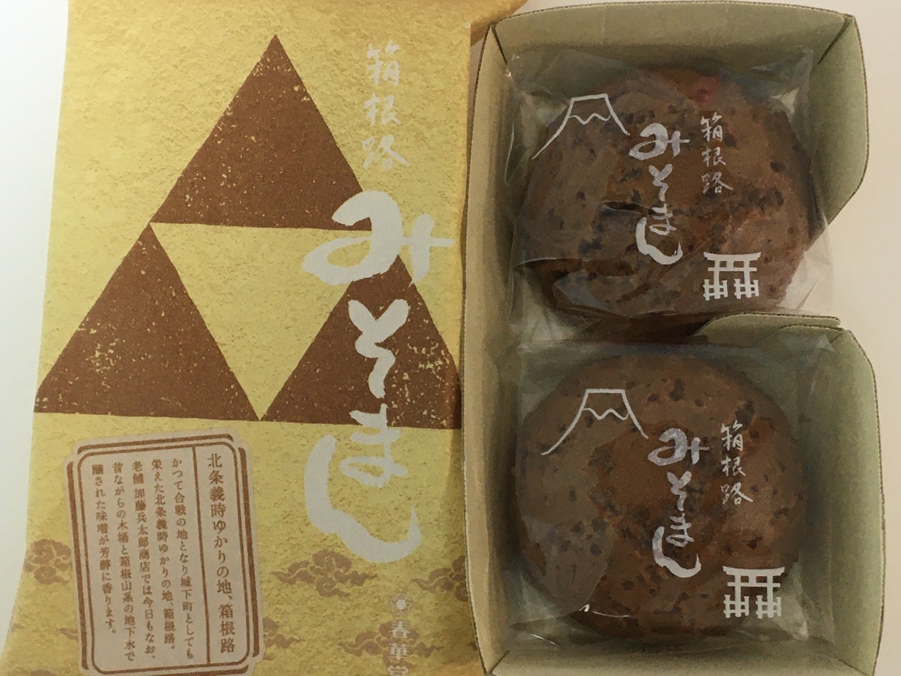 JR三島駅南口にあるキオスクです。改札の手前にあります。電車の時間待ちでお店を覗いていましたが、北条氏家紋のパッケージの「箱根路みそまん」を見つけ購入しました。うなぎパイでお馴染みの春華堂のみそ饅頭の限定版です。春華堂のうなぎパイの小袋に入れてくれました。クレカ、交通系電子マネーが使用出来ます。