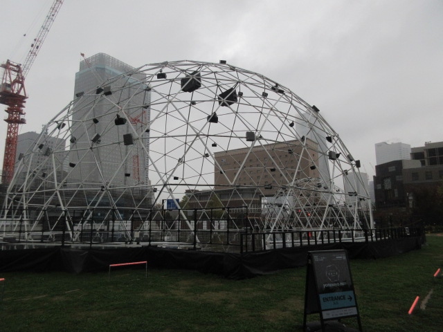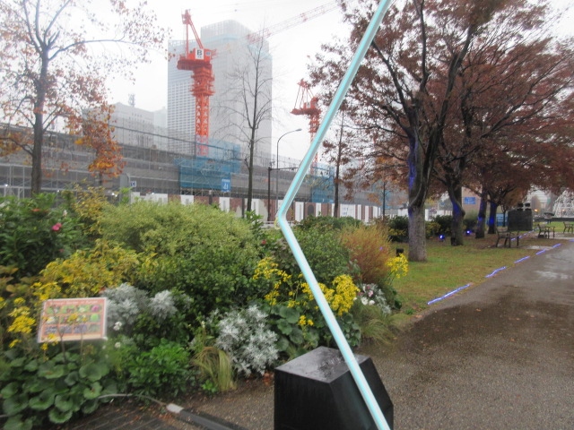 みなとみらいにある広場です。場所は赤レンガ倉庫やワールドポーターズの近くです。冬でしたので、夜のイルミイベントの「ヨルノヨ」の会場になっていて、大きなドーム状のオブジェなども出現していました。花や植物もきれいになっている素敵な広場です。