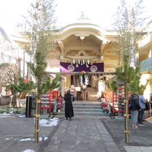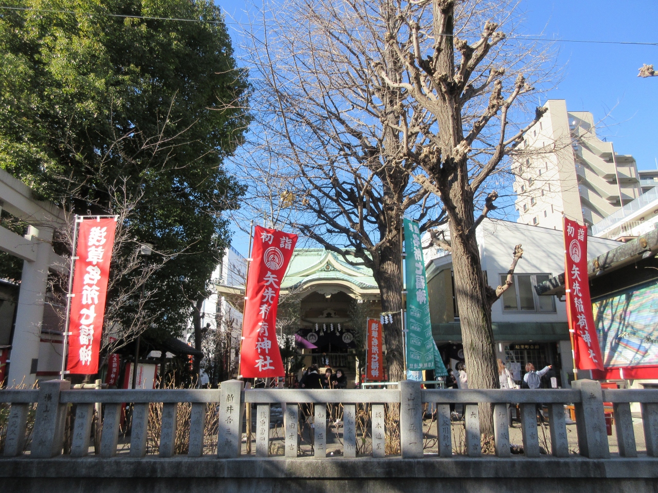 1642年、徳川家光が浅草三十三間堂を建立した際に、堂の鎮守として建てられた稲荷神社です。当時、三十三間堂で行われていた、一定時間内にどれだけ多くの矢を通すかを競う通し矢の先に神社があったことから、矢先と名付けられたそうです。現在は浅草名所七福神の一つ・福禄寿が祀られ、境内の中央に神木の大きなイチョウが植えられています。正月明けだったこともあり、多くの人が参拝に訪れ色紙を購入、七福神巡りをしていました。