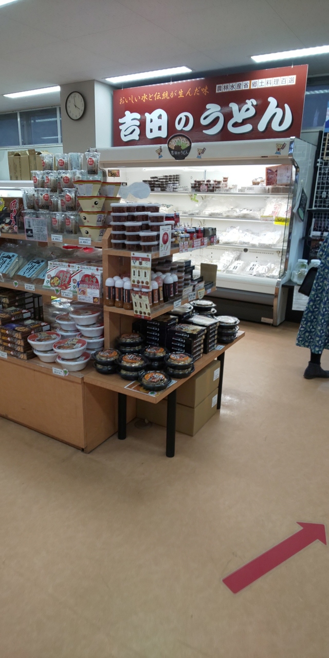 吉田うどんを目当てに訪問しました。さまざまなメーカーのものがあり、常温保存できるものから冷蔵保存で賞味期限が短めのものなどいろいろありました。