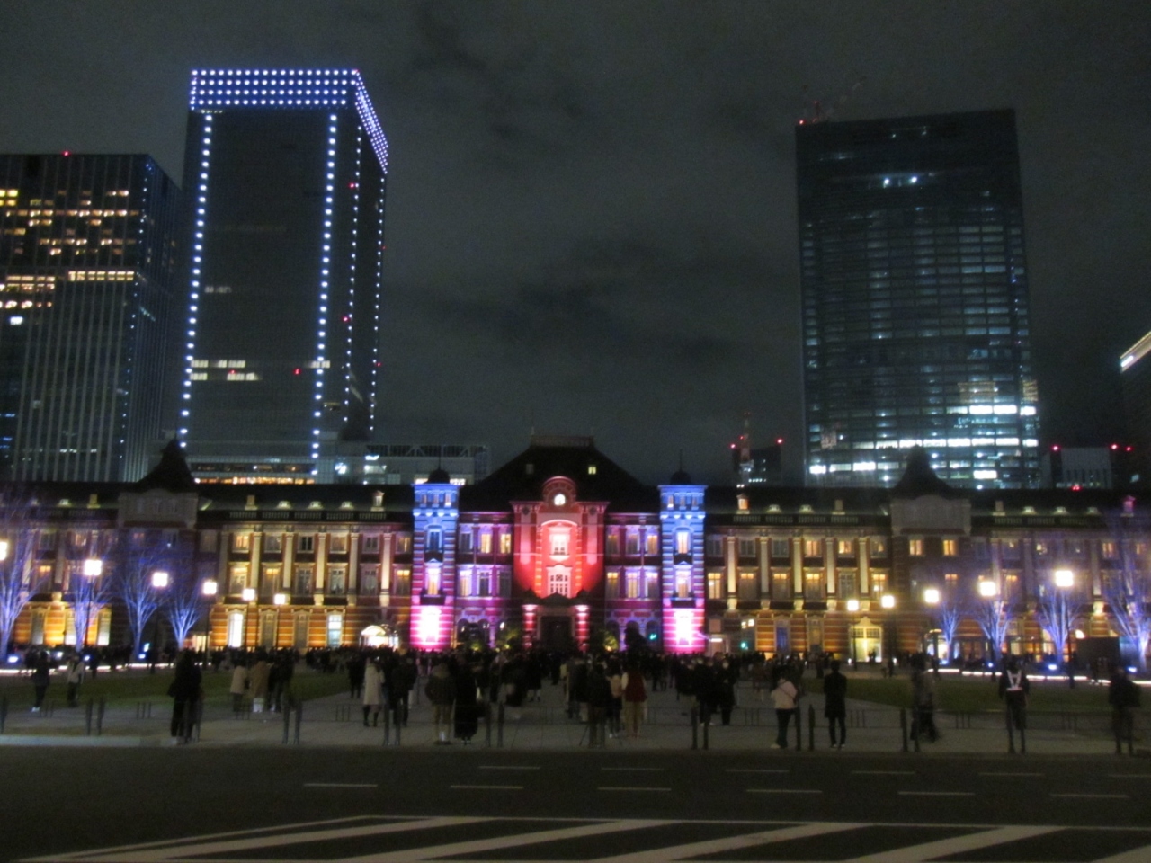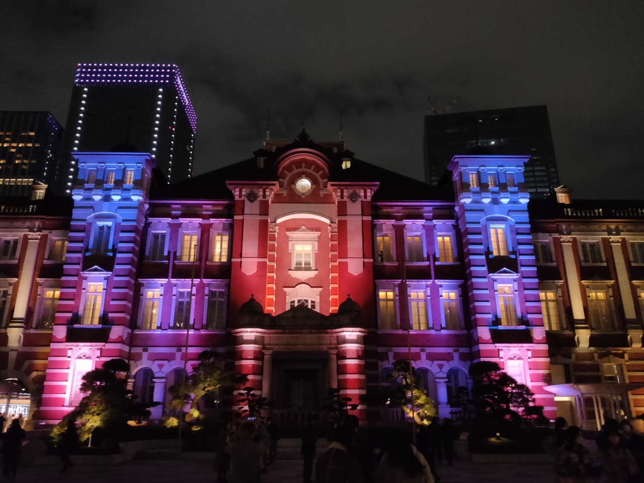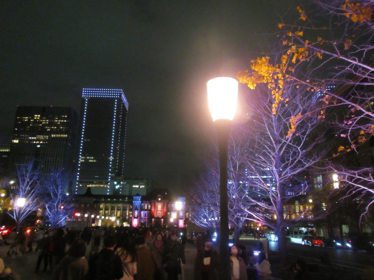 2021年は12月14日から25日まで(15時から21時)の期間、東京駅の赤レンガ駅舎や駅前広場の御幸通りの街路樹をカラフルにライトアップされていました。昔、行われていた3Dマッピングよりやや地味な感じになりましたが、それでも威厳のある歴史的建物のライトアップは美しいものです。同期間(2021年11月11日~2022年2月20日)、東京駅から御幸通りを少し行った丸の内仲通りでもイルミネーションが輝いているので、併せて訪れるとよいと思います。東京ミチテラスの方は、21時までと、夜、比較的早い時間に終わってしまうのが注意点です。また、御幸通りの地下が新型コロナのワクチン会場になっていて、地下からアクセスしにくくなっていました。