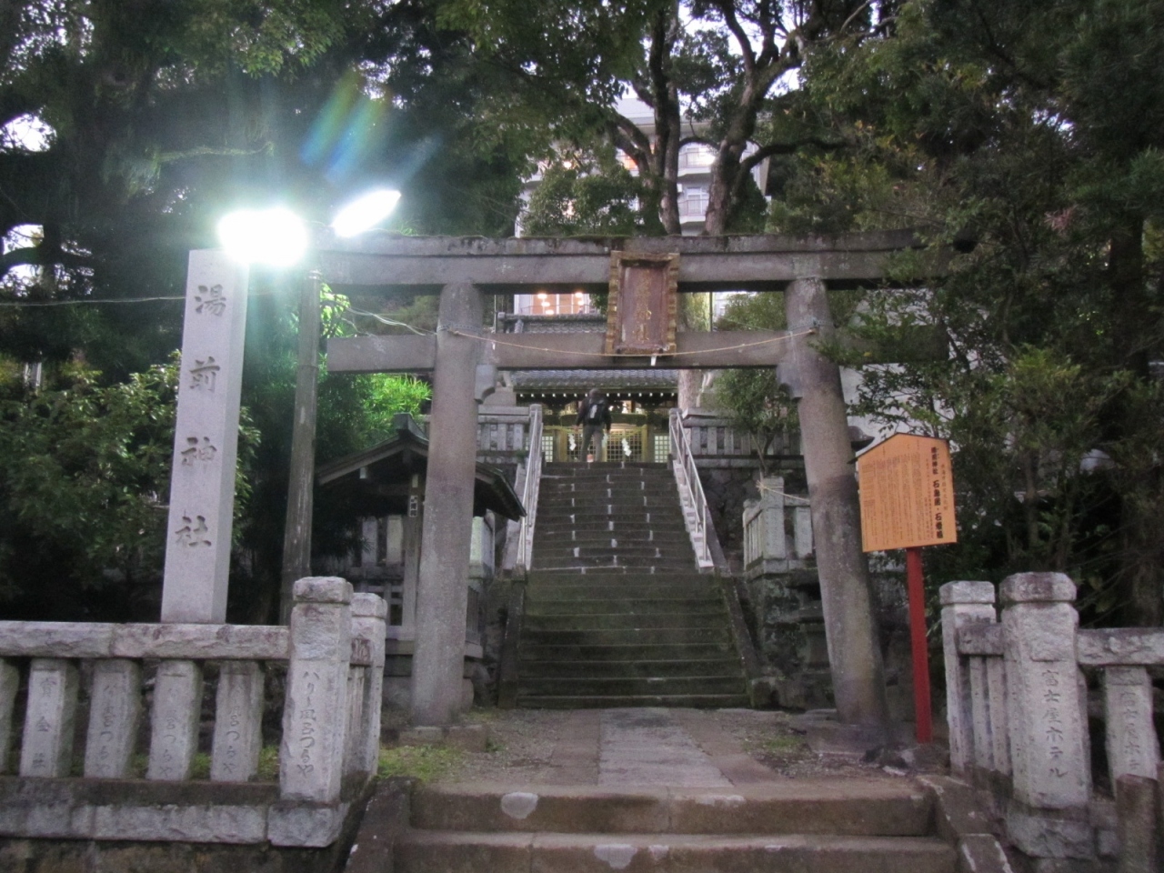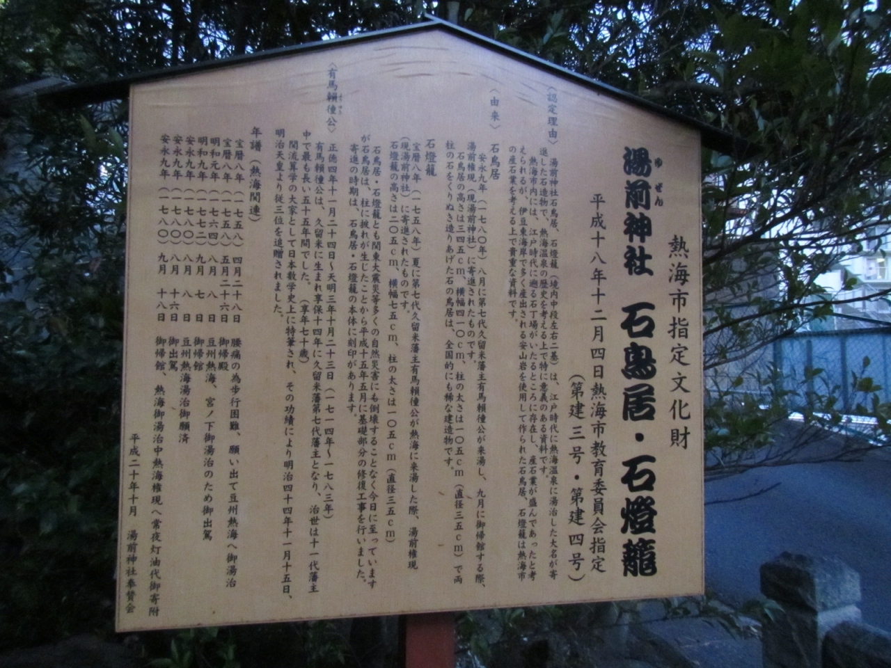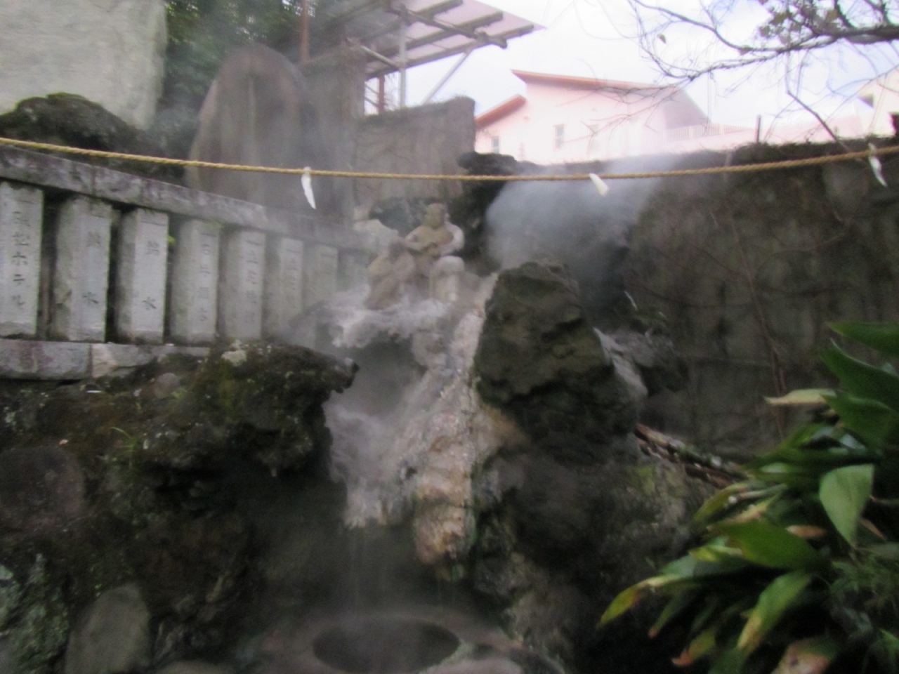 目の前には大湯間歇泉、隣には日航亭大湯があり、何より境内の入口に温泉が湧きだしているなど、熱海の温泉の源泉地に建つ神社です。来宮神社も割合そうですが、湯前神社は更にこぢんまりとした神社で、熱海銀座商店街、間歇泉、更に神社から宮坂を登って来宮神社に至る散策のついでに併せて寄ると良いと思います。大晦日には夜11時から年越し蕎麦の振る舞いがあるそうですが、2021年は残念ながら400食分からわずか100食分に減らされて提供とあり、境内には即席のテーブルが用意されていました。
