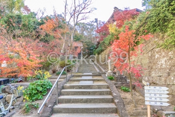 通りを挟んで建長寺庭園の反対側に「龍峰院」の参道の階段があります。階段の左側に手すりが付いていてバリアフリーへの配慮が見られます。階段の両側の木々もきれいに紅葉していました。階段の上り口に案内表示板があります。