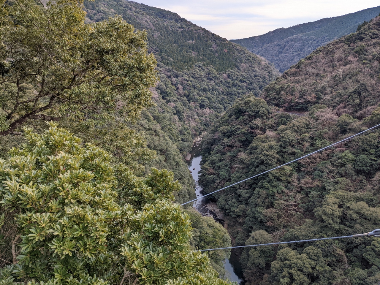 九重の夢大吊り橋といい九州の民はつり橋がよっぽど好きと見える。こちらも実用性は皆無の観光用の橋である。高所恐怖症には悪夢だが眺めは素晴らしい。冬の登山はつまらないが、こちらの山は冬でも落葉しないので冬でも見ごたえがある。沖縄のやんばるの森を思い出す。宮崎市内からは1時間半以内で行けるのでアクセスは悪くない。結構混んでました。