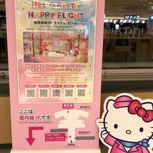 国内線ターミナルから国際線ターミナルへ行く連絡通路にあります。ハローキティと世界各地へ旅行しようというコンセプトのようです。入場は有料ですが、ショップ・カフェゾーンは無料です。近くにあるドラえもんの施設とよく似たつくりです。