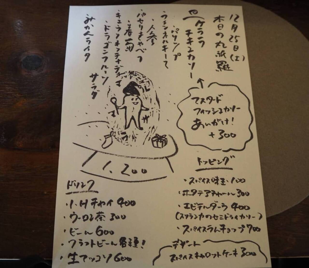 手書きメニューがとても味わい深くてまごころがこもっているなと思います。本日の丸祇羅とメニューにあるのでおそらく毎日書いているのかな?と思います。