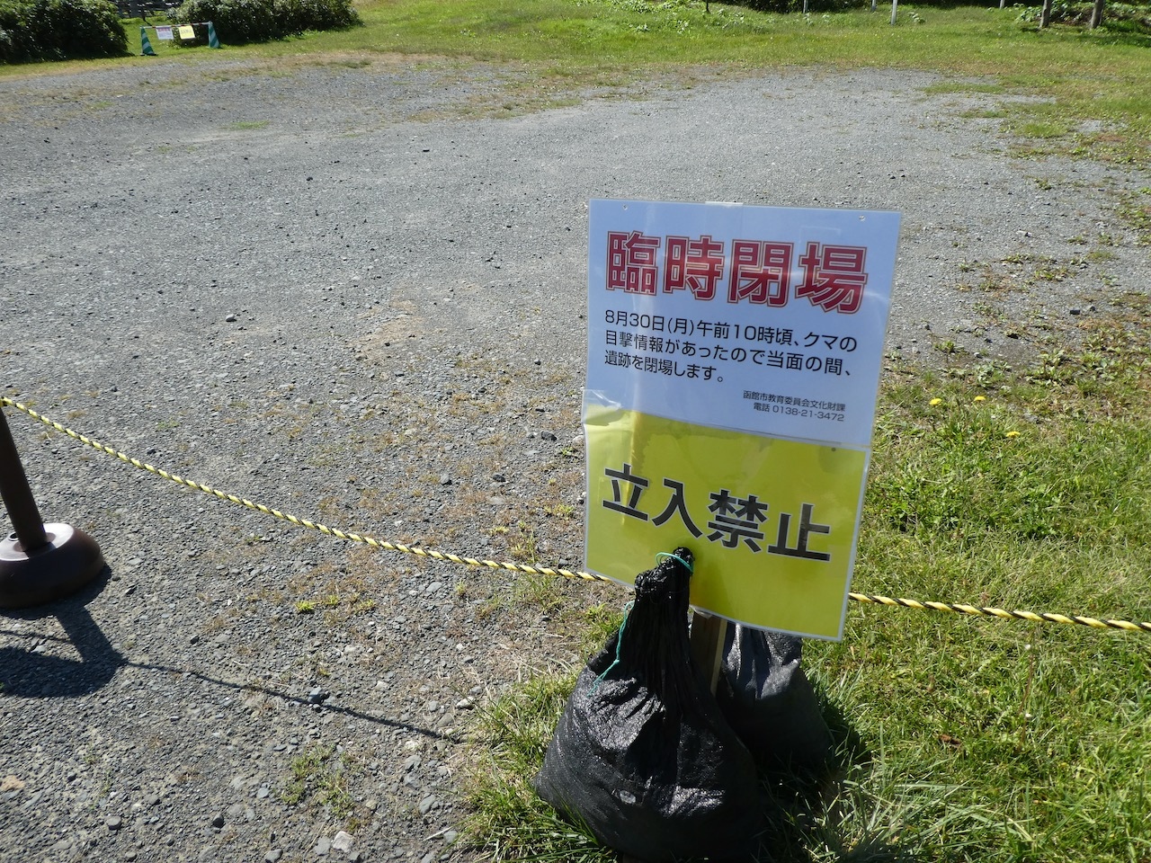 訪問時は熊が出た、とのことでしばらく休園中でした。とはいっても駐車場と公園が閉鎖されているだけで、道路から遺跡公園を見ることは可能でした。注意しながらさらりと看板と遺跡を見るだけになりましたが、雰囲気は味わえました。もともと遺跡とはこのような「感じる」ことが重要なので、これで十分かな、と思います。