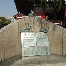 浅草寺本堂の少し手前の一角に、鳩ポッポの歌碑が建っています。ブロンズ製のなかなか立派な造りの歌碑ですが、文字が崩れているので説明はかなり読みづらいです。浅草寺の鳩がこの歌のモデルだったことを伝えています。