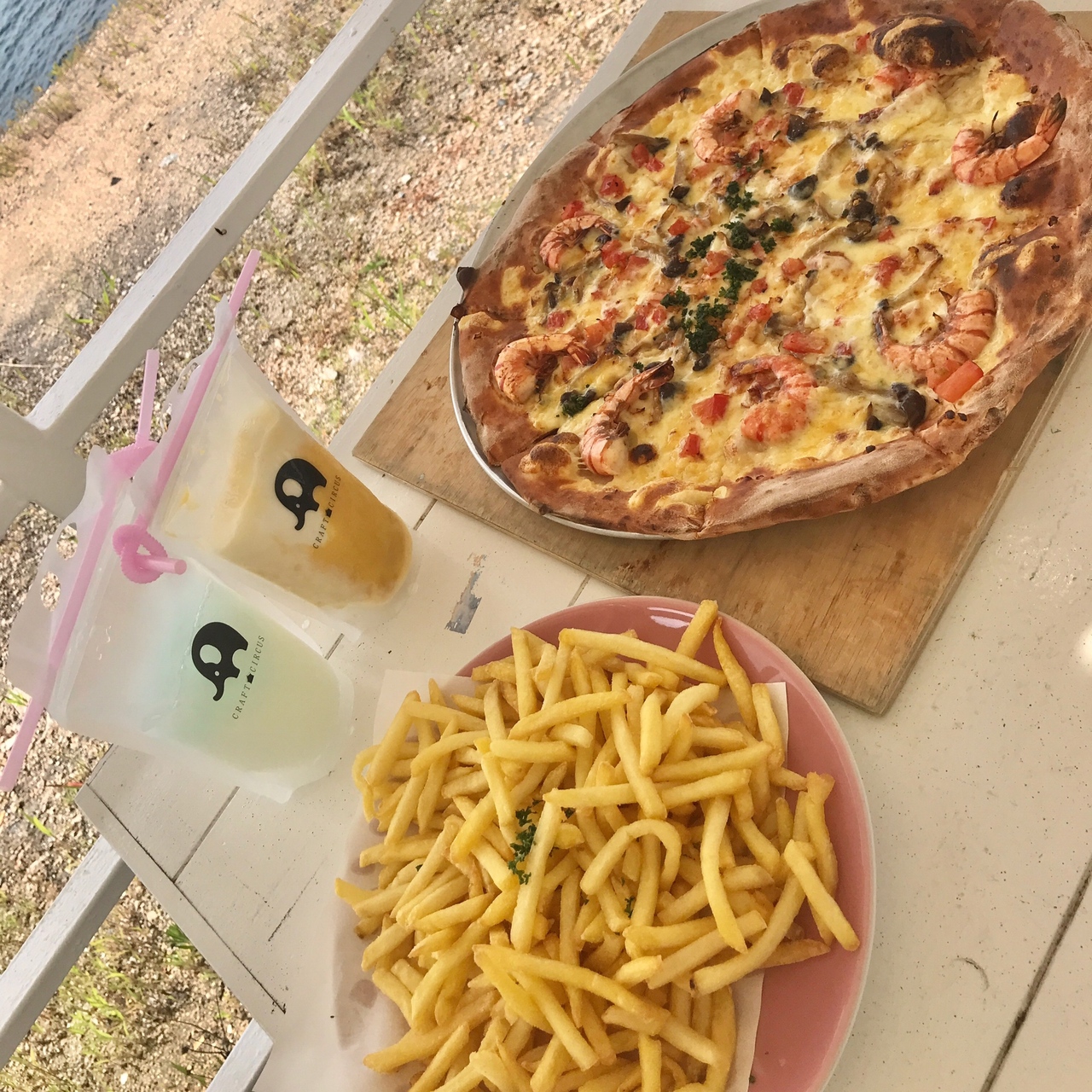 観光客向けの場所かなと思っていたら案外良くてとてもおすすめの場所です。入口は少しわかりづらいかもしれません。駐車場もあります。写真を撮るスポットもあり、ピザはとても大きくて味もとても美味しいです。店内は外で食べるようになっていました。