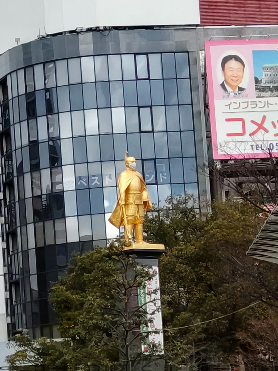 岐阜県は織田信長ゆかりの地ということもありいたるところき信長関連のものを目にすることができます。JR岐阜駅を出たところにあるゆめ広場には光り輝く金色の信長像がありました。しかもマスクをしていたのも印象的でした。