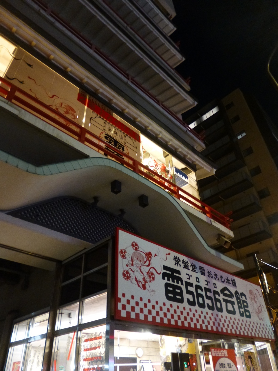 「雷5656会館」は、浅草の言問通り沿いにある特徴的な建物です。雷おこしで有名な「常盤堂雷おこし本舗」のビルで、ホールや売店などがあり、雷おこしの製造体験なども楽しめる施設です。残念ながら飲食店は2021年12月17日で営業を終了してしまったようです。