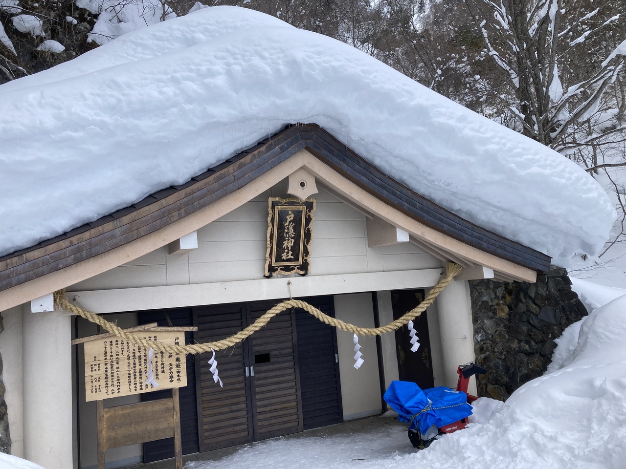 奥社、九頭竜社は冬の間は御神体は中社に移されますが、スノートレッキングで参拝することができます。