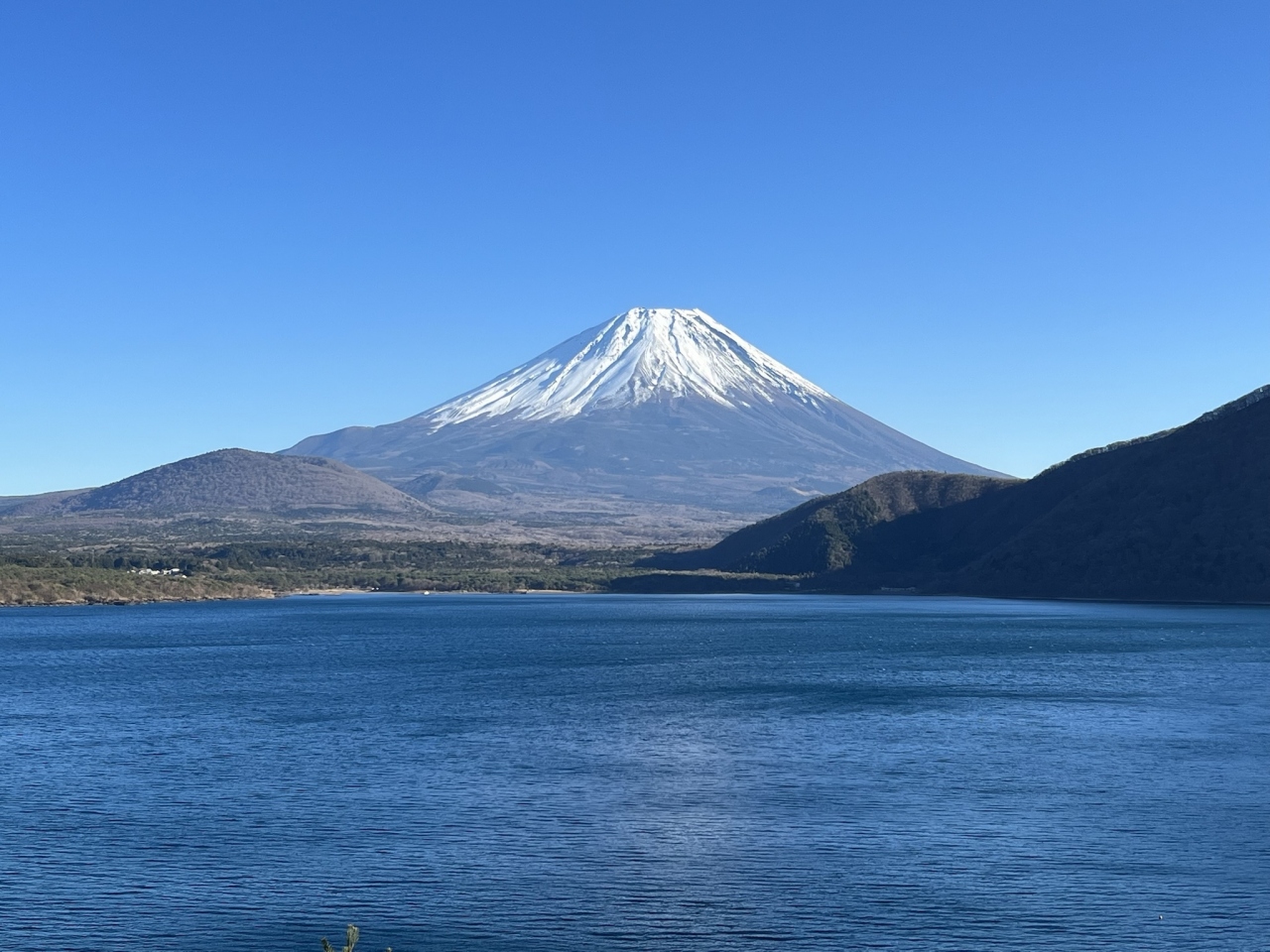 路線バスを使って本栖湖へ行きました。富士宮からは国道139号線で行きますが、バス停があるのは本栖湖観光案内所。本栖湖の東の端、富士山側なので、ここからは本栖湖越しの富士山を見ることはできません。本栖湖との北側の県道「本栖湖みち」を50分ほど歩くと浩庵キャンプ場がありますが、ここから本栖湖越しに見る富士山は絶景。1000円札に描かれている富士山そのままの景色を見ることができました。