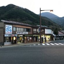津和野駅向かいにあり、「レンタサイクル」の大きな看板と「貸自転車かまい」の看板が目に飛び込んでくる。お土産屋と手荷物預かり業務を兼ねた店舗。