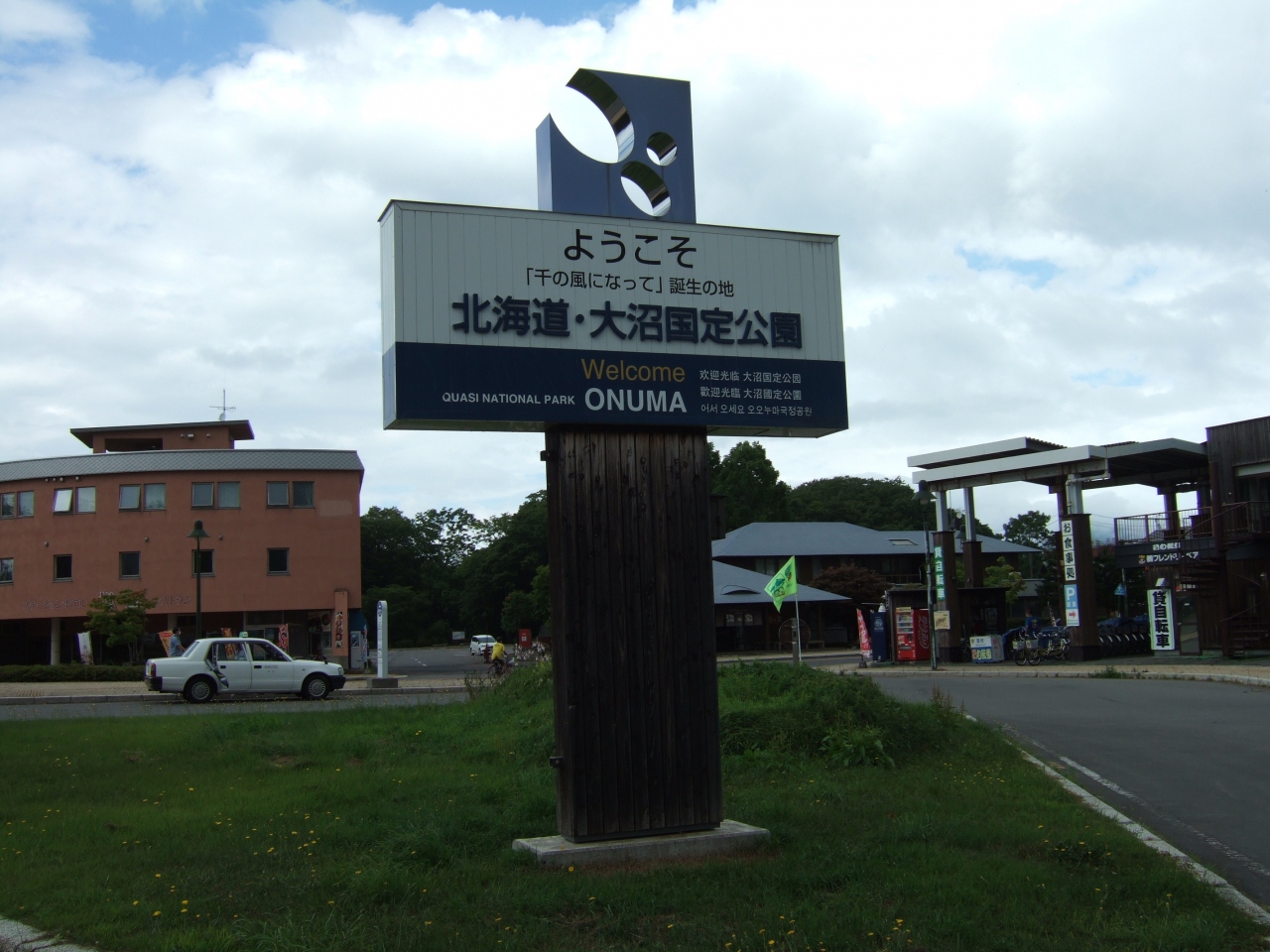 駒ケ岳をバックに広がる大沼・小沼を中心とした国定公園ですが、しばらく前の紅白歌合戦で歌われた「千の風になって」が作られた場所だそうで、湖のほとりにモニュメントがありました。
