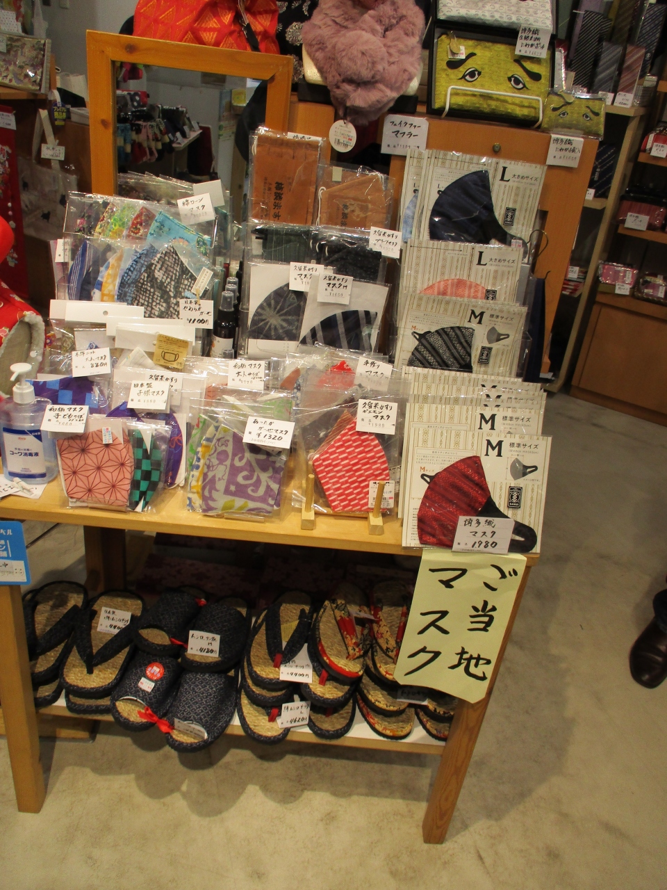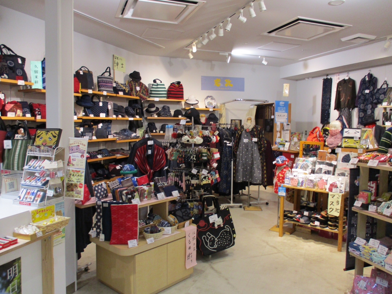 東京に福岡から帰る時に、時間があったので福岡空港内のおみやげ屋を散策しました。民芸品や衣料雑貨を販売している岩政というお店を見つけました。名前は厳めしい感じですが、ご当地マスクとして、博多織や久留米かすりのマスクなど、ちょっとしたお土産に最適な商品もあって、良いお店だと思いました。