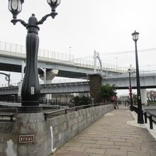 東武スカイツリーライン・浅草駅と対岸の源森川水門を結ぶすみだリバーウォークを歩いた際に立ち寄りました。北十間川に架かる短い橋ですが、池波正太郎の鬼平犯科帳にも登場しています。かつては源森川に架かっていた橋で、近くに架かっていた小梅橋と対になると、夫婦が枕を並べているように見えたことから名が付いたそうです。橋からはスカイツリーや水門が眺められます。隅田川に架かる歩行者専用の橋・すみだリバーウォークもすぐ近くです。