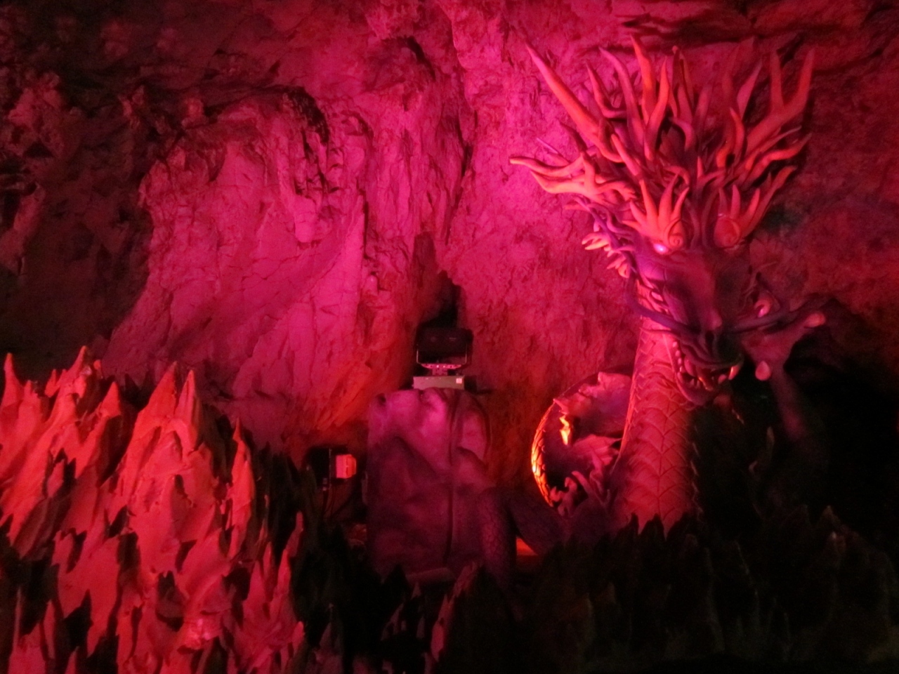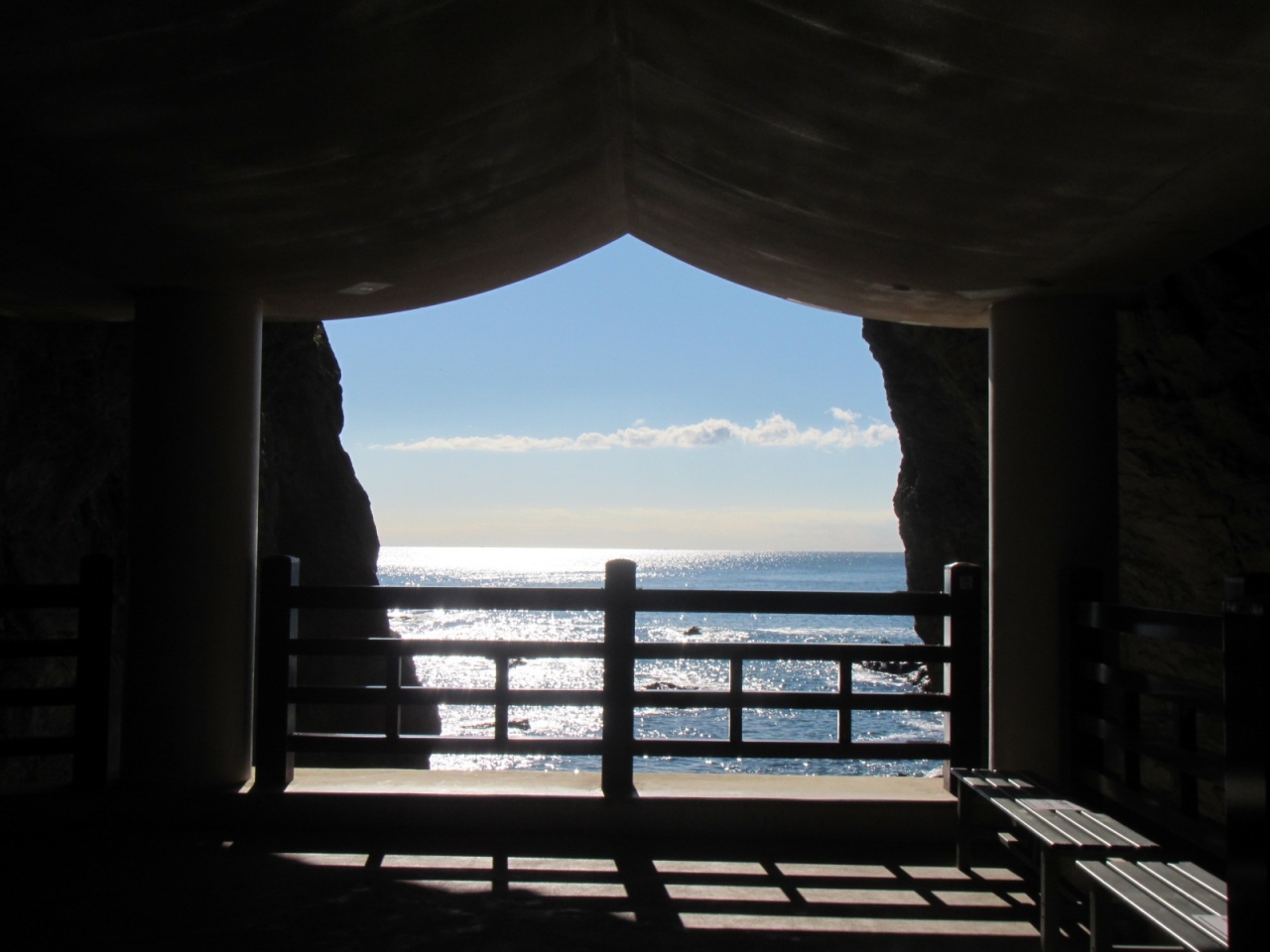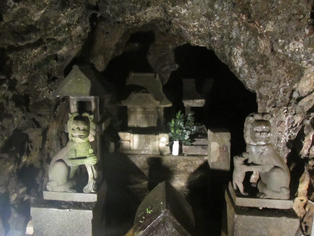 岩屋内では、映画“八つ墓村”を彷彿とさせる洞窟の風景が味わえ、奥には歴史的な石造が安置されるなど、なかなか神秘的な雰囲気も味わえますが、昔から多くの人が出入りした場所であり、現在では観光用に完全に整備されてしまっていて、洞窟内でも安全に舗装された歩道やイルミネーションがあり、水が滴る場所にはプラスチックカバーが施されるなど、同地の自然が学術的に希少だとの解説があったものの、完全に加工された自然の風景となっていました。なお、洞窟内の明るく照らされた解説板で海食洞窟の成り立ちや同地の歴史などを簡単に知ることができます。