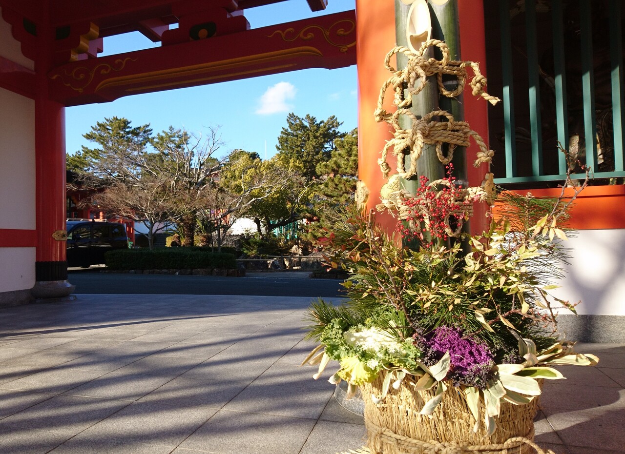 門には門松が置かれていて正月らしさが出ています。