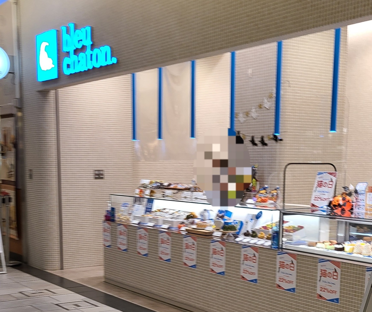 遠くからも目立つ白と青の爽やかな雰囲気のお店、ブルー(青い)シャトン(子猫)ですが猫は白抜きされていました^^;