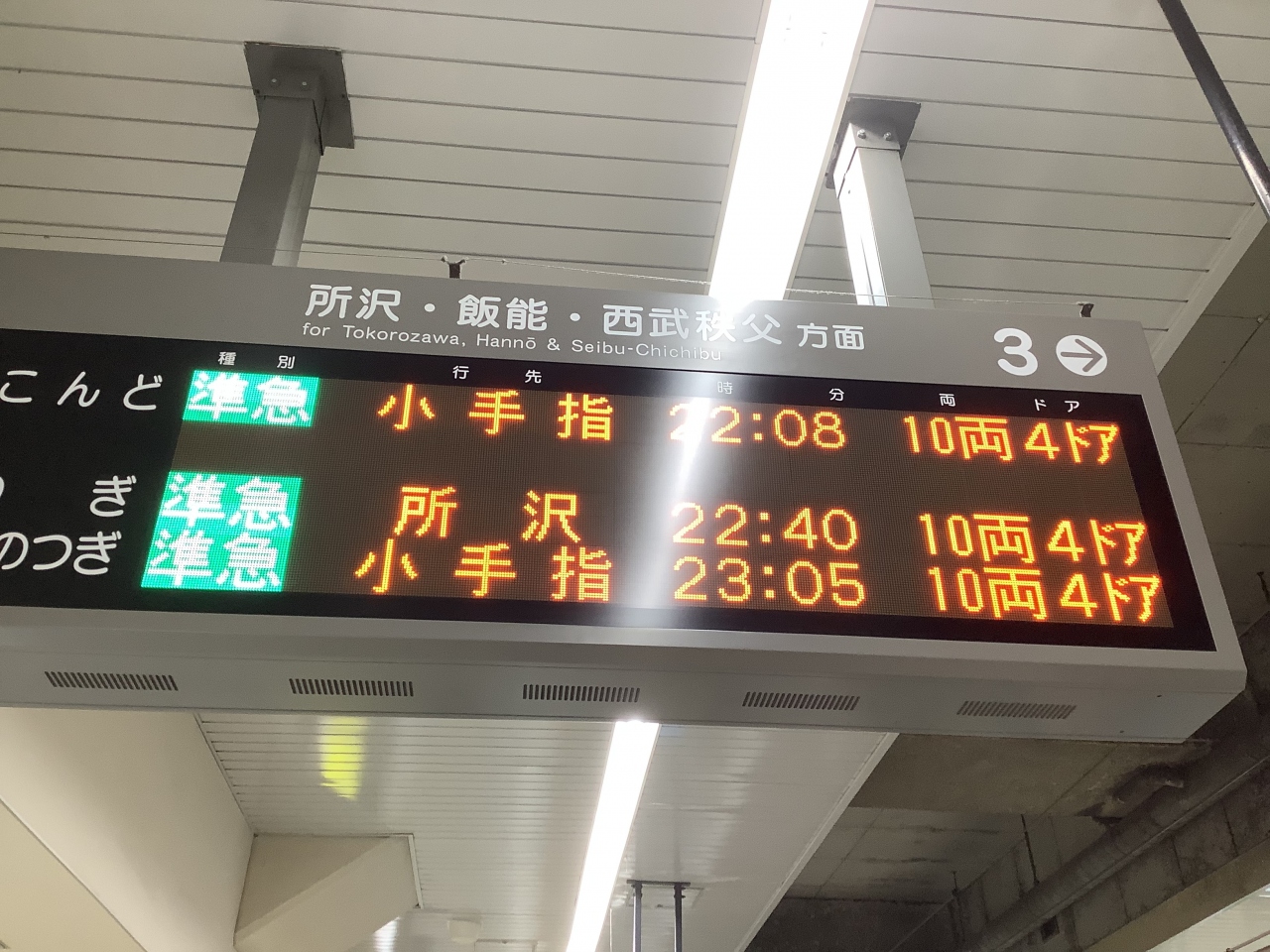 元旦の 夜 22時過ぎ に「池袋」から【 西武池袋線 】準急 小手指行き に 乗車しました。