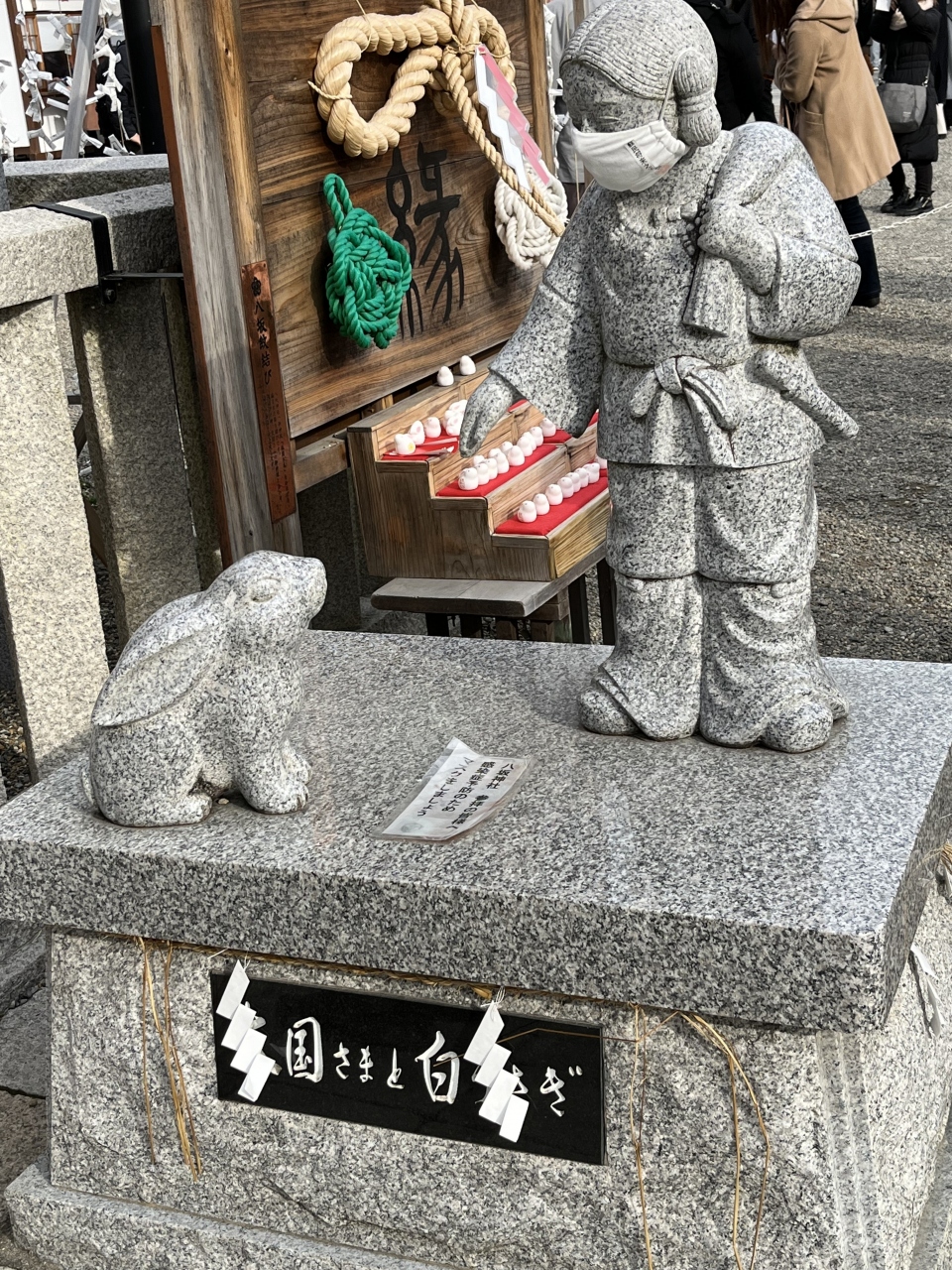 鳥居のすぐ下にいる「大黒さま」が マスクを着用していました。