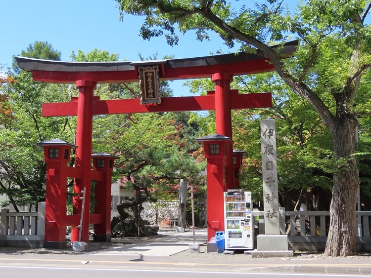 中島公園に隣接していますが、参道はいったん公園の外に出て、東側からアクセスします。北海道には本州各地のさまざまな場所から、新天地を求めて人が集まってきたことがわかります。この神社は鳥居の脇の石柱に伊夜日子神社と書かれていますが、越後一の宮のあの弥彦神社の流れをくむお社で、明治45年に新潟出身の有志で建立したものだそうです。とても立派な真っ赤な鳥居です。